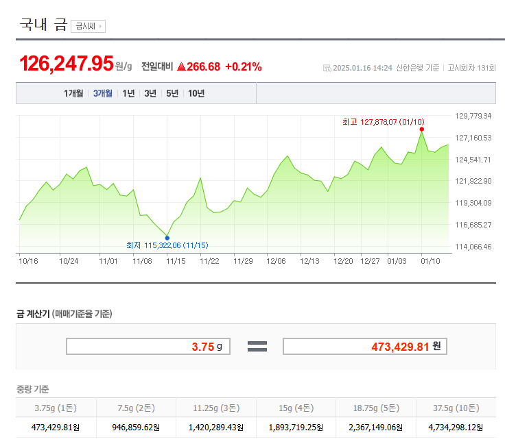 • 현재 금값: 126,247.95원/g (2025년 1월 16일 기준)